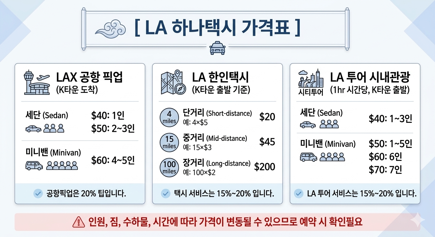 LA 한인택시 추천 - 엘에이 공항픽업 최저가 - LA 하나택시 🇰🇷